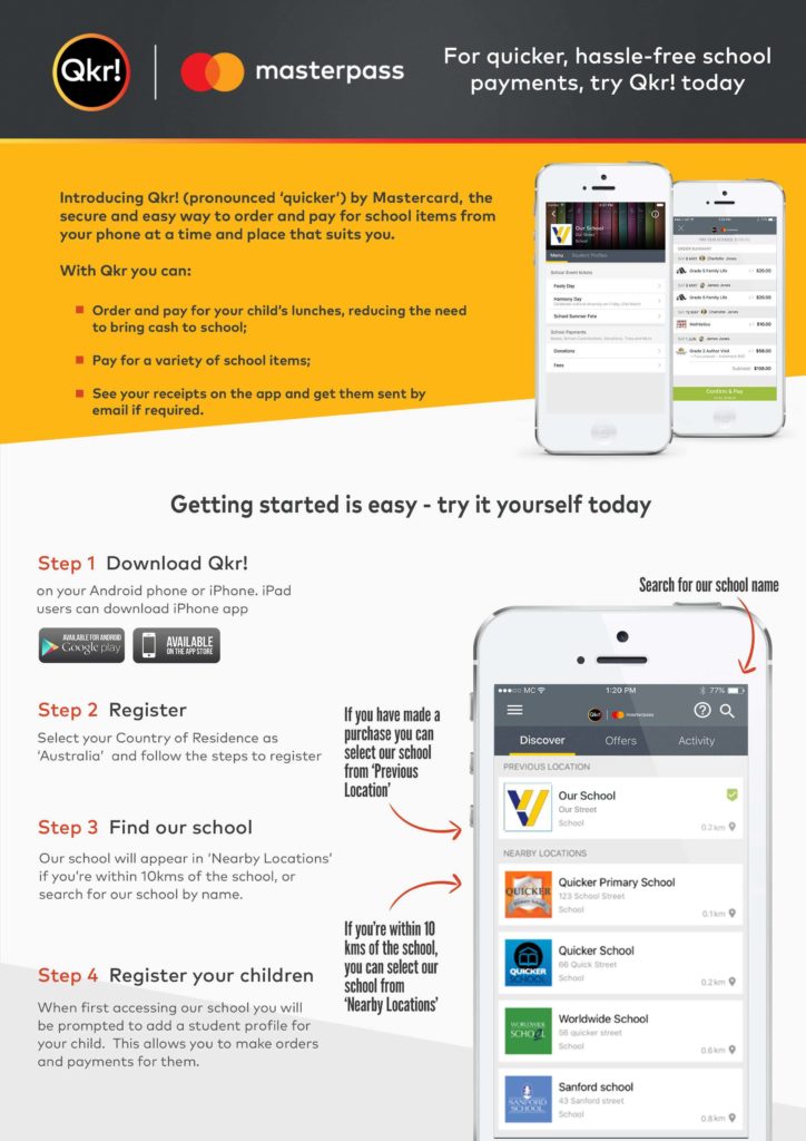 Only officially issued school tax invoices or excursion/event notices may be paid by this method.